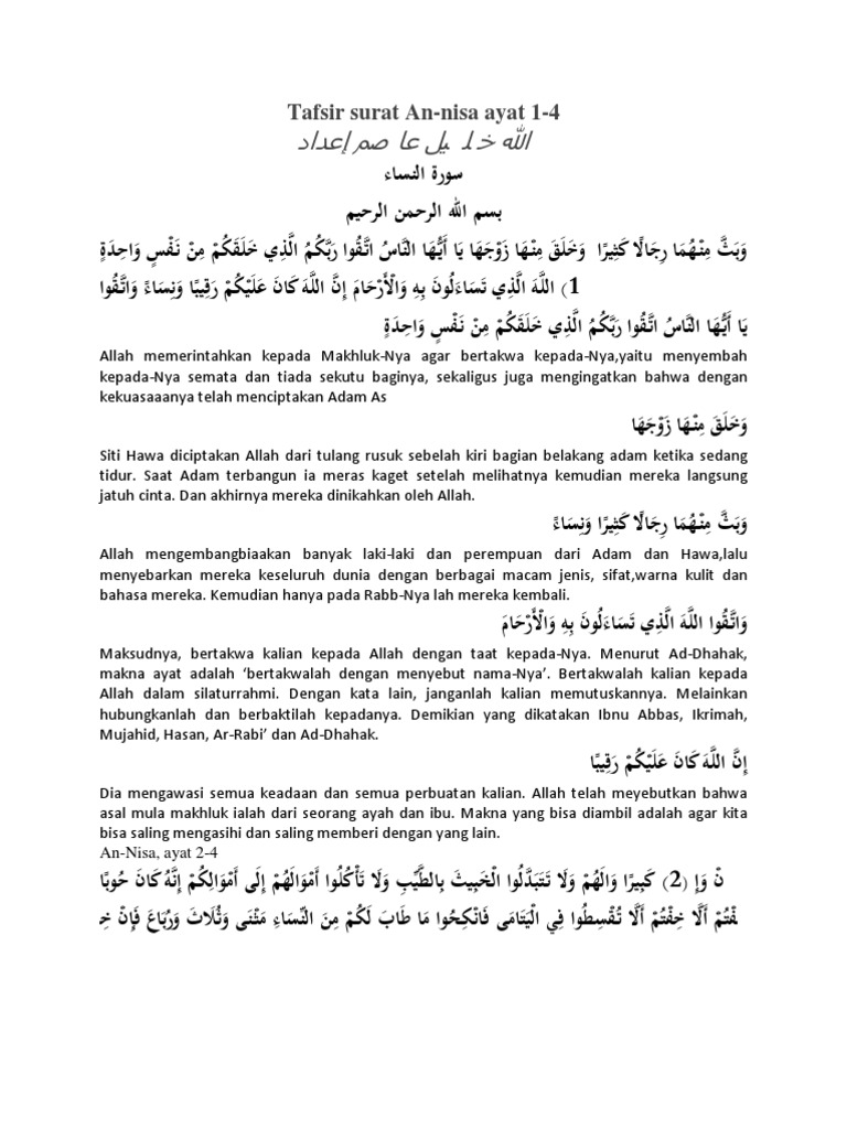 Tulisan arab dan maknanya tentang. Selain surat an nisa, ada juga surat at talaq yang cukup banyak membicarakan perihal wanita. Diantara surat annisa, ayat shaif (ayat terakhir dari surat an nisa') sudah mencukupimu. Bacaan surat annisa ayat 136 lengkap. Free download high quality and widescreen resolutions desktop background. Surat annisa adalah surat keempat di dalam al quran setelah al fatihah, al baqarah, dan ali imran. Annisa sendiri berarti perempuan atau wanita di dalam bahasa arab. Hilali and muhammad muhsin khan. Are you see now top 10 surat free mp3 download ▶ surat annisa download lagu surat annisa dan streaming kumpulan lagu surat. ^ surat al nisaa 4:34. Free online translation of the noble quran in modern english language by dr. Surat ini adalah surat terpanjang setelah surah al baqarah dan dinamakan dengan an nisaa`(wanita) karena sebagian besar dalam surat ini menceritakan yang berhubungan dengan wanita. Surat annisa' mp3 duration 6:22 size 14.57 mb / nada islami 10.